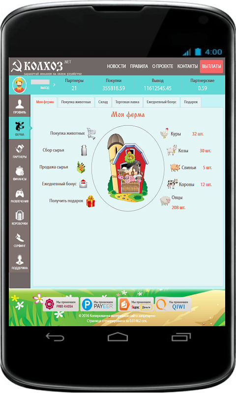 Добро пожаловать на самый лучший проект в истории интернета. Колхоз - уникальный в своем роде интернет ресурс, где можно не только занимательно провести свободное время, но и заработать!