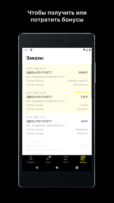 Baixe o aplicativo, obtenha seu código QR exclusivo e mostre-o no caixa ou faça um pedido e saboreie sua comida favorita onde quer que esteja! Bom apetite!
