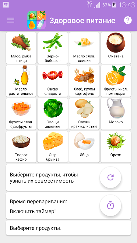 A essência da aplicação Alimentação saudável é ajudar o corpo a sintonizar cada elemento da comida. Se produtos de natureza diferente entram no estômago ao mesmo tempo, o trabalho em sua digestão fica difícil.