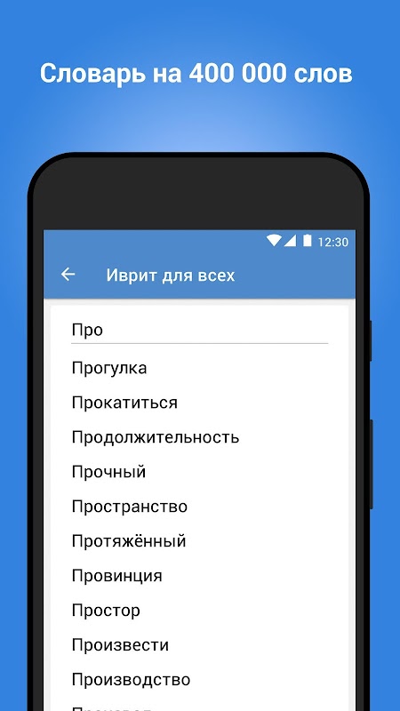 В данном приложение есть словарь на 400 000 слов, что поможет во время путешествий по Израилю. При регулярных занятиях уже через две недели вы сможете ощутить первые результаты, а через месяц воспринимать на слух и отвечать на новом для Вас языке.