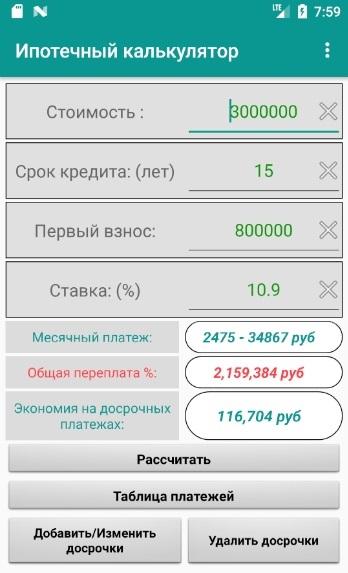 "Ипотечный калькулятор" - бесплатное приложение по расчету ипотечного кредита.