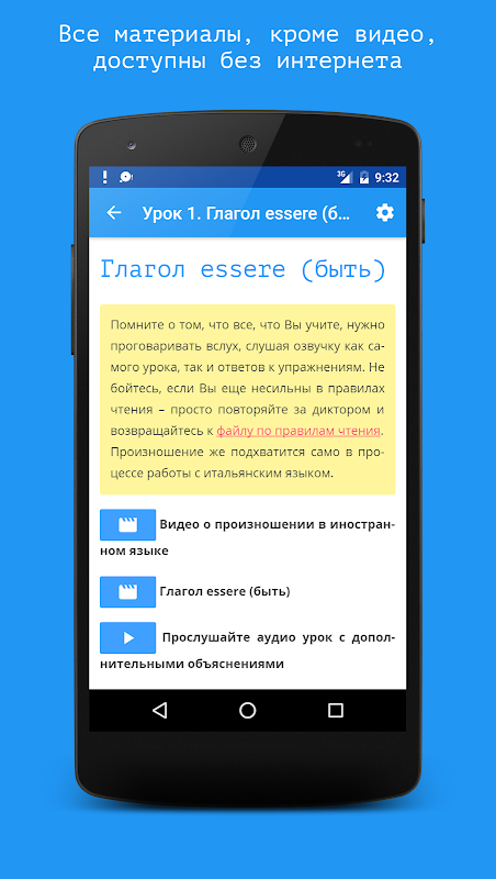 - todos os materiais (exceto a seção Vídeo) estão localizados em seu dispositivo e não requerem conexão com a Internet para serem usados.