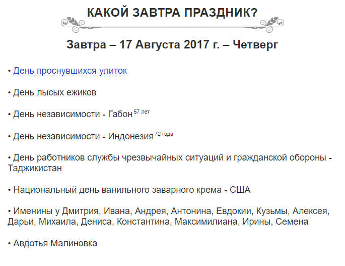 Сегодня, в мире отмечают много интересных праздников. Узнайте какой сегодня праздник на и поздравьте друзей с днём рождения или другим праздником!