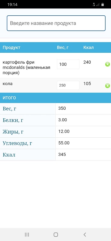 Você pode escolher um produto ou qualquer número necessário de produtos. A calculadora mostrará o número total de quilocalorias (kcal) nos alimentos selecionados, bem como seu conteúdo de proteínas, gorduras e carboidratos.
