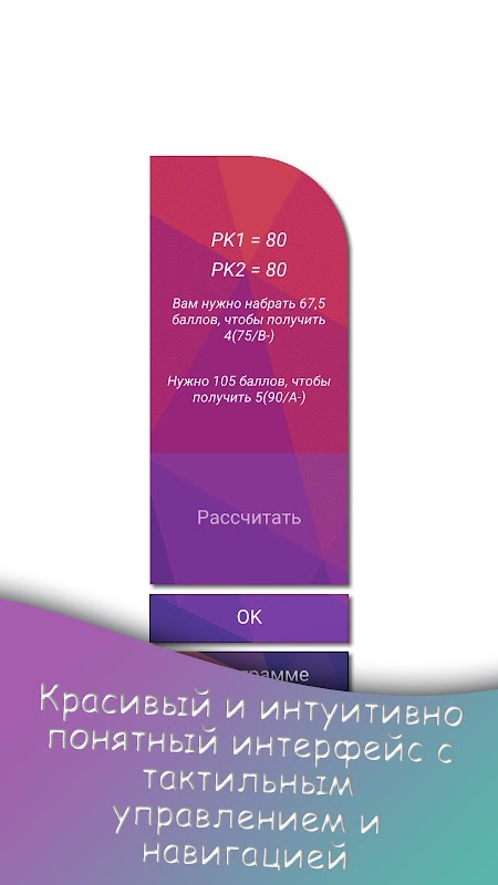 RateENU - это калькулятор с красивым дизайном, который поможет тебе без затруднений подсчитать итоговый балл, полученный в ВУЗе.