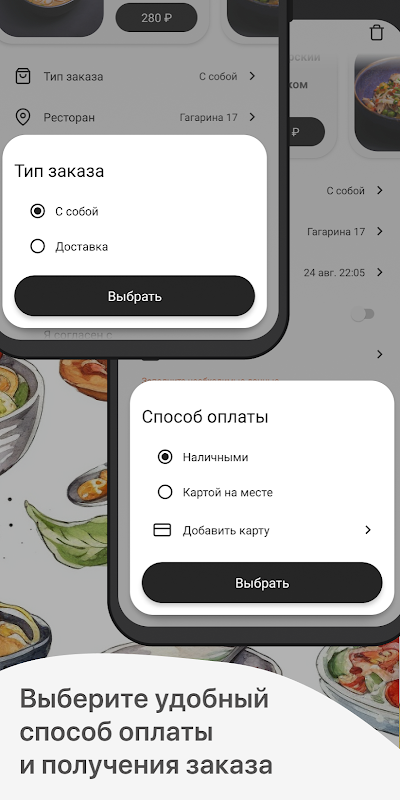 Como fazer um pedido no aplicativo CAFE YAPOSHKA: selecione os itens que você gosta no menu, adicione-os à cesta e vá para a tela de checkout (clicando no ícone da cesta).