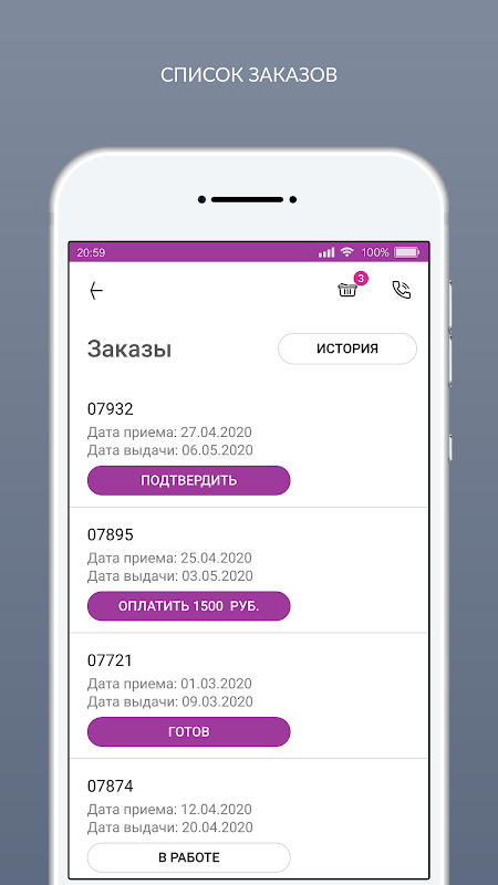 A primeira aplicação que permite ao cliente não só ver informação sobre os seus bónus, pontos de aceitação da Lavagem a seco e promoções em curso, mas também ligar para um estafeta online! Você só precisa inserir o número do telefone na seção de login.