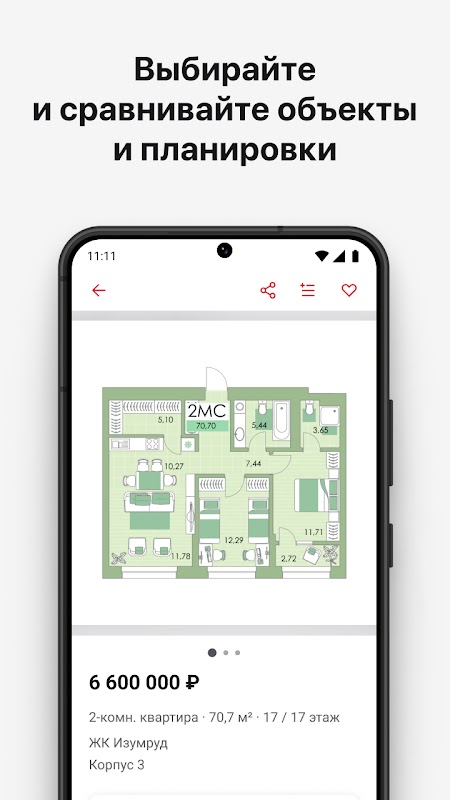 • Obtenha informações sobre apartamentos: layouts, preços, fotos, infraestrutura