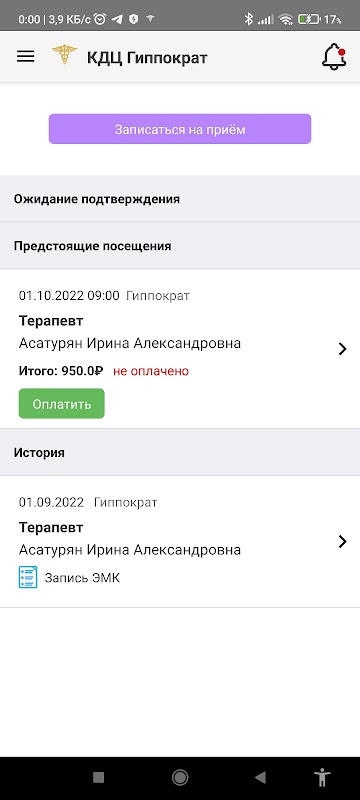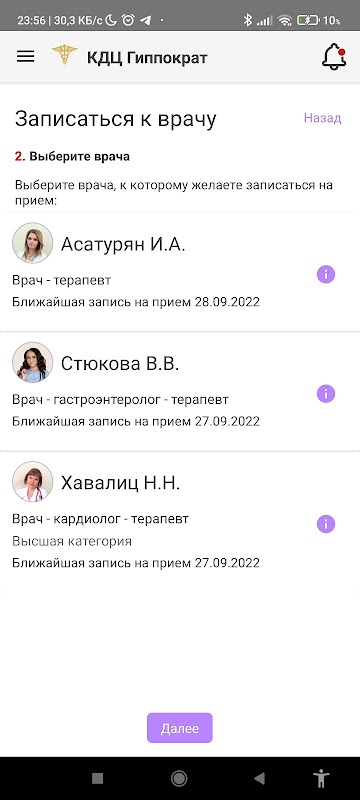 CDC "Hipócrates" (Korenovsk): marcar uma consulta, pagamento por serviços, histórico de chamadas