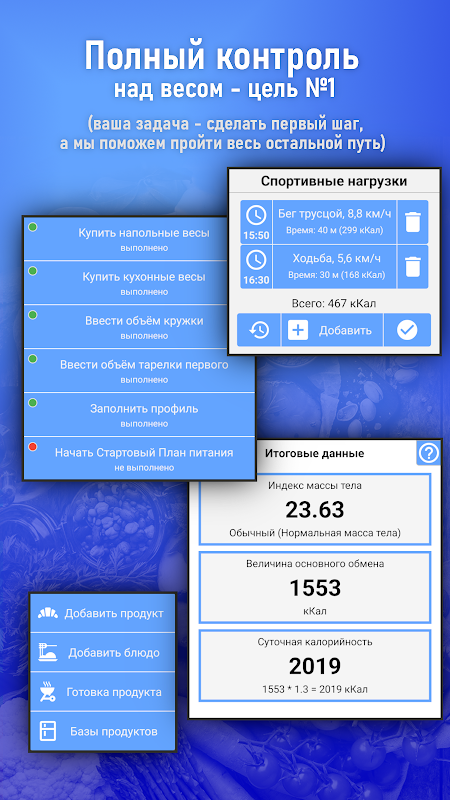 - calcule a necessidade de calorias usando todas as fórmulas populares;