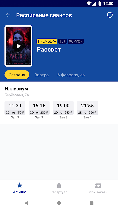 A aplicação móvel do cinema "Illizium" irá ajudá-lo a escolher uma sessão conveniente, aprender sobre as notícias da distribuição de cinema e comprar ingressos de cinema na cidade de Novomoskovsk.
