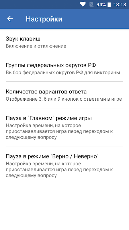 ✔ Configurações flexíveis em que você pode escolher o número de opções de resposta (alterar a dificuldade do jogo) e os distritos federais cujos códigos deseja aprender.