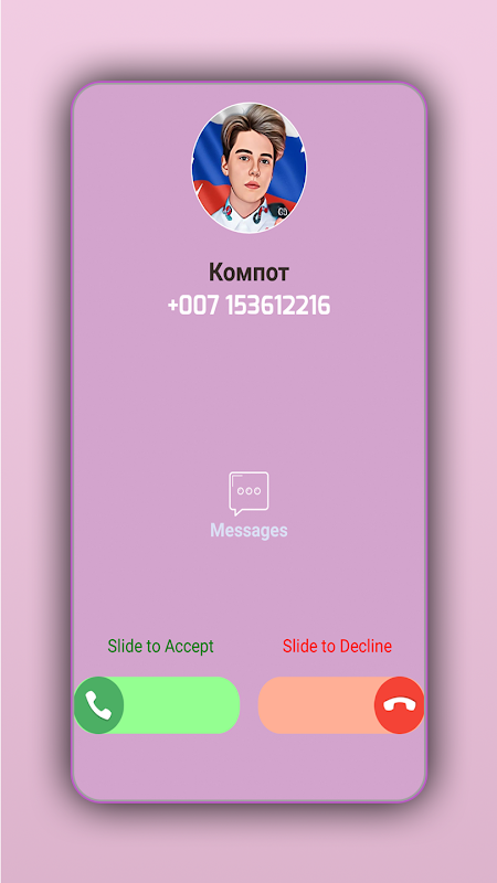 Компот chamada e bate-papo. Aplicação muito engraçada com Компот. Este aplicativo foi projetado para simular falsa chamada e bate-papo Компот para fazer uma brincadeira com seus amigos e deixá-los acreditar que você tem contato com Компот e amigos📲📲. Você tem um botão simples «Contatos», você pode fazer uma chamada de voz ou um chat ao vivo, catore vídeo com seus personagens, brinquedos com seu número de telefone, como Компот … é muito divertido de se divertir. 😱😨