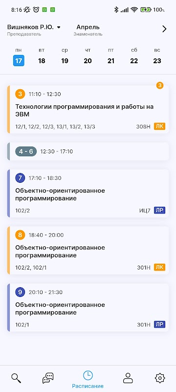 Calendário eletrônico moderno para alunos e professores de KubSU.