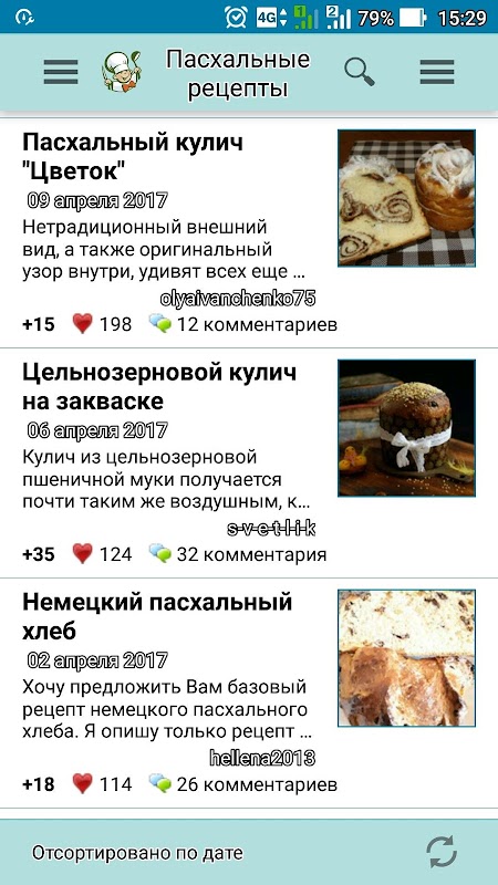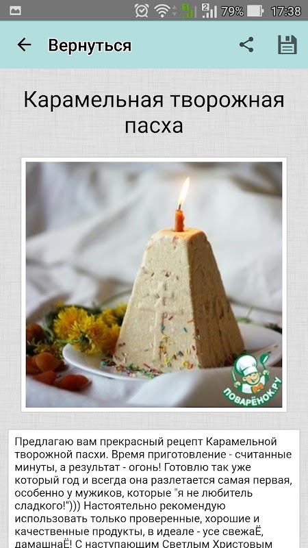 A aplicação da culinária Povarёnok.ru enorme coleção de receitas saborosas e comprovada Páscoa.