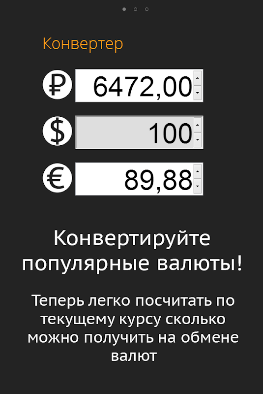 O aplicativo permite que você aprenda a posição do rublo em relação ao euro e ao dólar e mais ...
