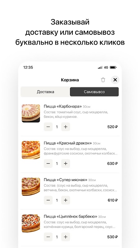 - Faça um pedido de forma rápida e com confirmação instantânea pelo aplicativo;
