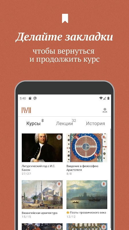 Cursos de palestras em literatura, música, arte, filosofia, religião, história, psicologia e outras disciplinas. Conhecimento abrangente dos melhores professores e profissionais. Habilidades úteis para a vida e comunicação. Gravações de áudio e transcrições de palestras, ilustrações, recomendações para leitura independente.