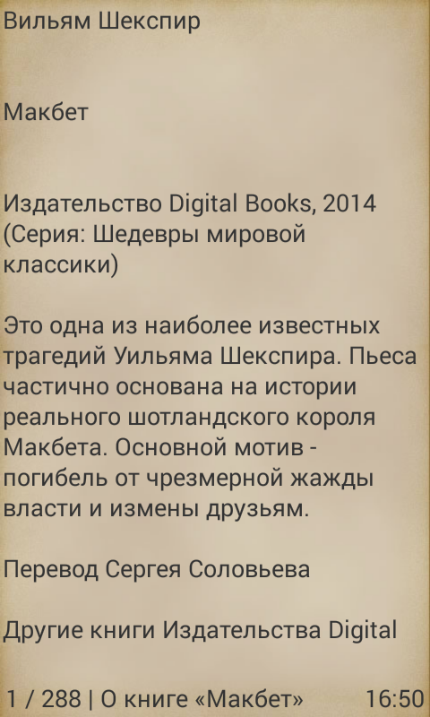 Esta é uma das mais famosas tragédias de William Shakespeare. A peça é parcialmente baseado na história real do rei escocês Macbeth. O motivo principal - a morte do desejo excessivo de poder e traição de amigos.