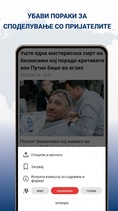 Este aplicativo traz os últimos jornais, notícias e vídeos da maioria dos jornais da Macedônia. Você pode ler rápida e facilmente as notícias da Macedônia em várias categorias: esportes, viagens, saúde, vídeo, entretenimento, educação, negócios...