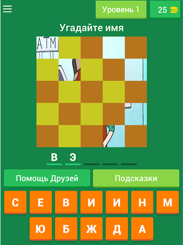 Коснитесь блоков, следуйте изображениям и нажмите буквы, чтобы ввести имя!