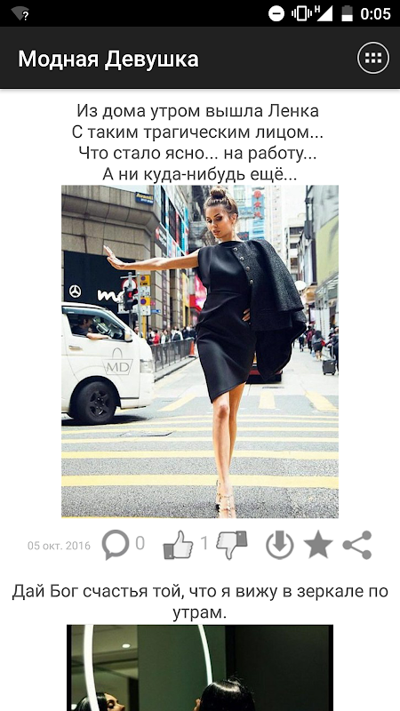 Модная одежка для девушек всех возрастов. Как одеться сегодня и правильный выбор комбинаций одежды. Модные картинки и стильные девушки. Вечерние прически и наряды для девушек. Советы по взаимоотношениями. Макияж и укладка волос, красивый make up, как краситься каждый день, сушка волос и уход за волосами. Эти и многие другие темы, которые интересны модным девушкам затронуты у нас в приложении. Советы от дизайнеров одежды и стилистов. Одежда для девушек и как стильно одеваться. Стильные девчонки, блог для девушек, мода для девушек. Стрижки на короткие и длинные волосы, косички, причёска каре. Как красиво одеваться и выглядеть хорошо. Советы девушкам. Советы по похудению и занятию спортом. Мотивация и высказывания для девушек.
