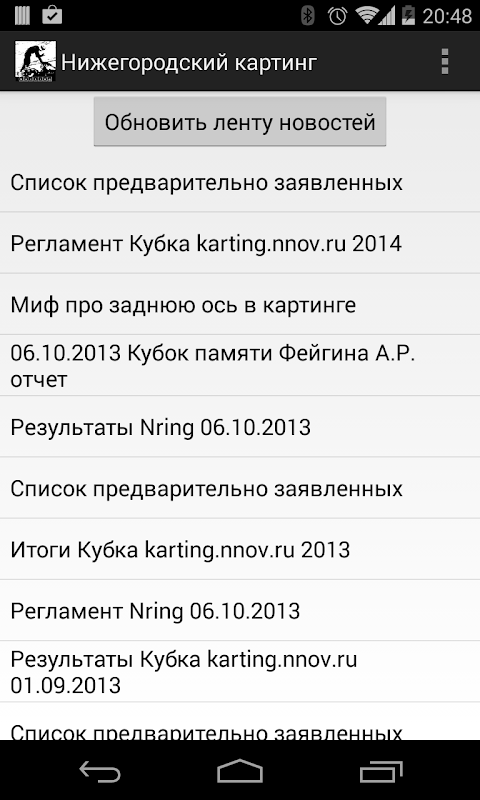 Мобильное приложение сайта http://karting.nnov.ru, посвященного целиком картингу в Нижегородской области.