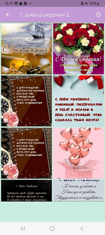 Baixe o aplicativo Cartões de Feliz Aniversário → Selecione sua imagem favorita e compartilhe-a → Aproveite a variedade de imagens que você pode encontrar.