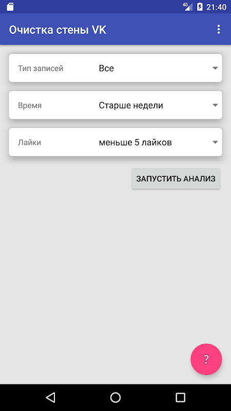 Uma aplicação não oficial para paredes de limpeza Vkontakte por critérios