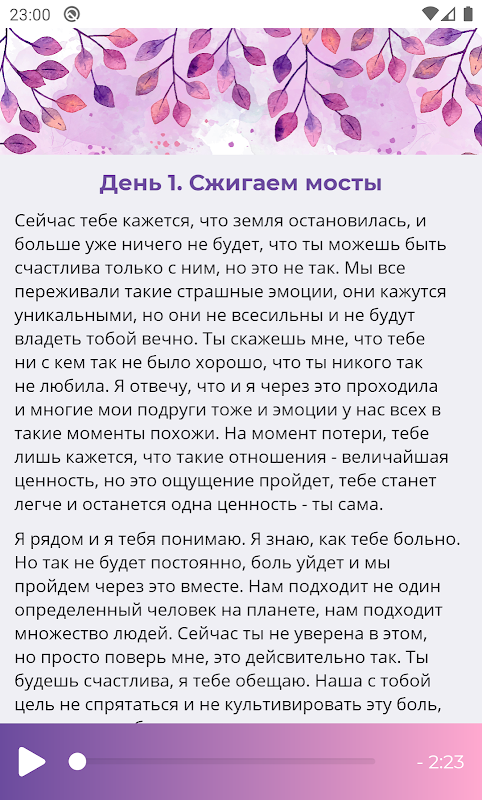 Ты не будешь одна, в минуты, когда будет особенно трудно, слушай мои аудио-медитации. После прохождения заданий они станут доступны в специальном разделе.