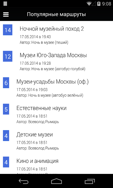 Для истинных фанатов активного культурного отдыха в приложение встроен пользовательский рейтинг популярных музейных маршрутов. Рейтинг поможет подобрать интересный музейный трип и устроить незабываемый музейный марафон.
