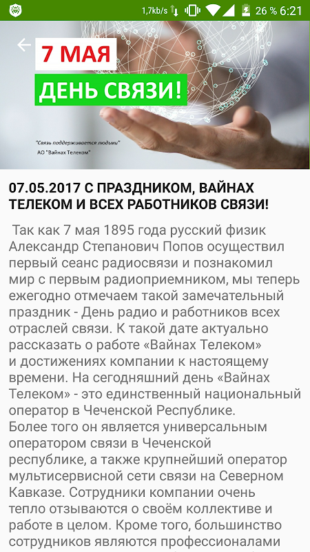 O programa permite que você verificar o seu saldo de conta no ISP "Vainakh Telecom"