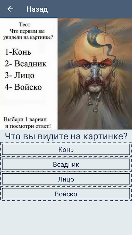 Passando em testes interessantes nas fotos, você pode não apenas se divertir, mas também aprender sobre seus desejos secretos. Passe alguns minutos realizando os melhores testes psicológicos e determine suas reais necessidades no momento.