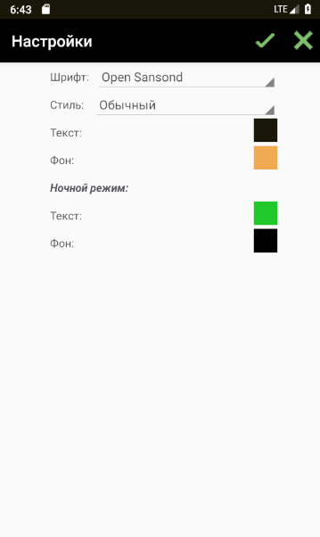 O aplicativo suporta o modo "leitura noturna", lembrando de onde você parou para cada categoria. Graças a isso, você poderá retomar a leitura posteriormente no mesmo local.
