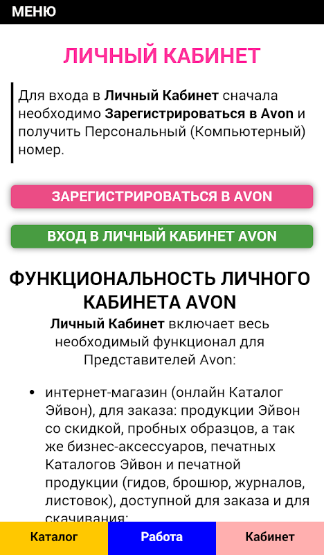 AVON (Avon) Work - um aplicativo com o qual você pode: