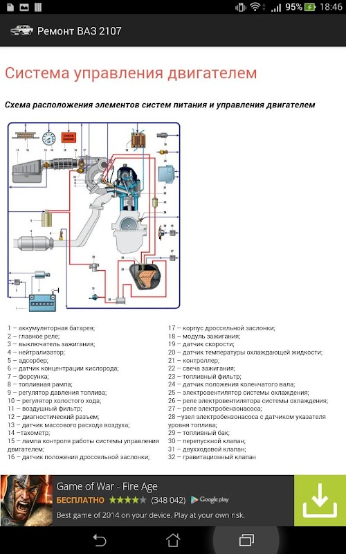 Мультимедийное руководство по ремонту автомобиля ВАЗ-2107 , ВАЗ 2104 от журнала "За рулем" адаптированное под Андроид.