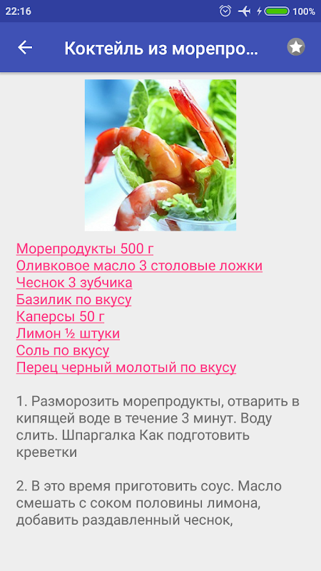 Informações sobre Рецепты блюд с морепродуктами с фото APK
