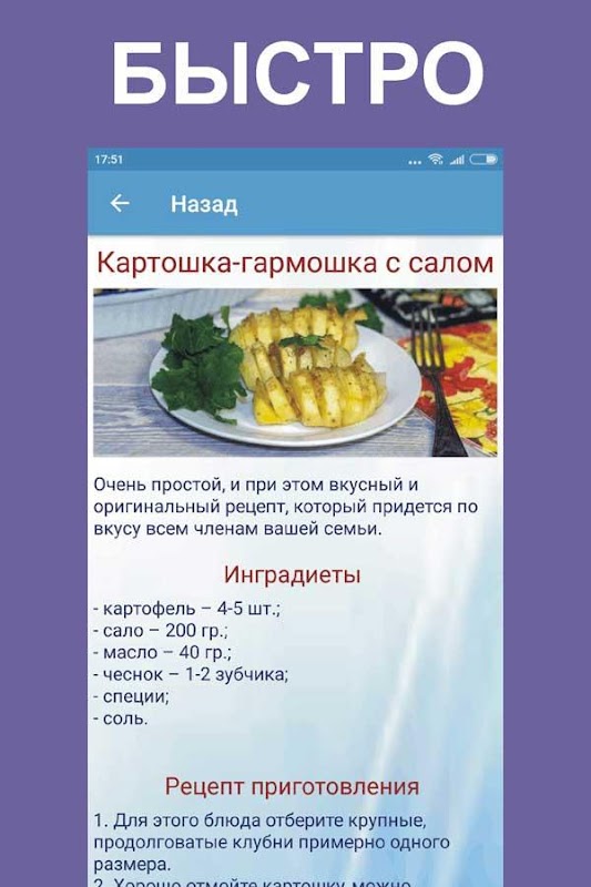 В наше время иметь под рукой рецепты на каждый день не составляет труда. Любая хозяюшка может закачать себе на телефон наше бесплатное приложение и иметь всегда с собой лучшие рецепты с фото. Здесь представлена как русская кухня, так и лучшие образцы европейских кулинаров. В приложении приведены простые рецепты на каждый день, который сможет приготовить любая хозяюшка. Вы узнаете что приготовить в мультиварке, как пожарить сырники, из чего приготовить постные блюда и многое другое.
