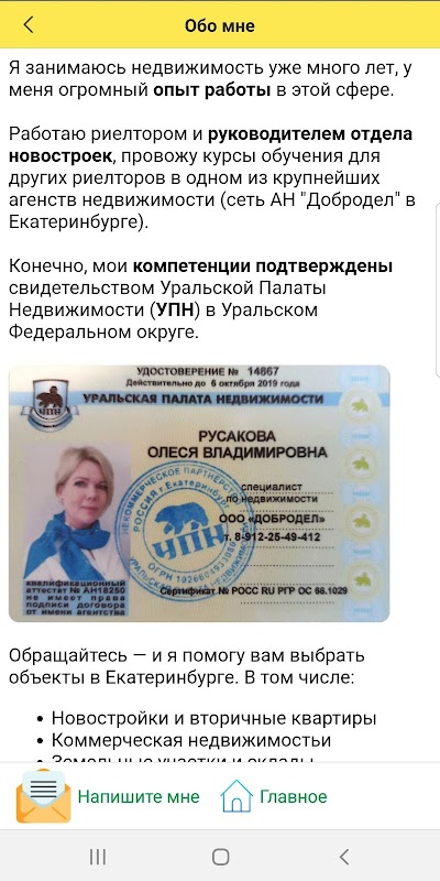 Риелтор в Екатеринбурге - Русакова Олеся 1.5.0