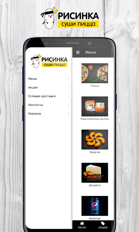 Установите приложение «Рисинка» на свой смартфон и заказывайте доставку еды в 2 клика! Для Вас большой выбор роллов, ароматная пицца, а также салаты и закуски. Быстрая доставка на дом и в офис.