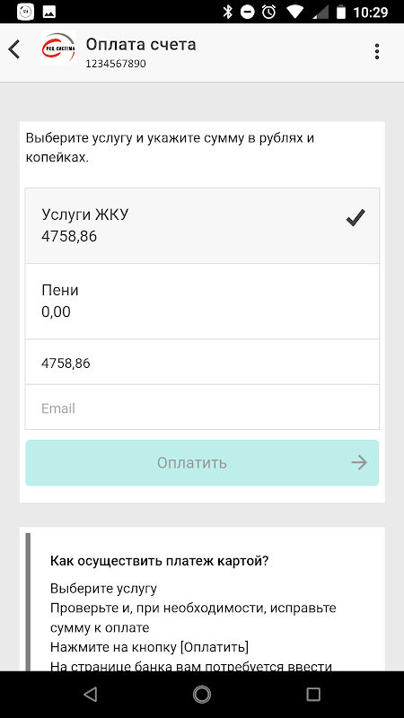 Мобильное приложение для работы в личном кабинете «РКЦ-СИСТЕМА»