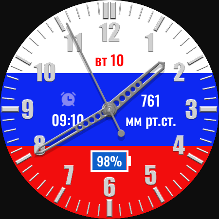 Relógio analógico em russo com a imagem da bandeira da Federação Russa para Wear OS