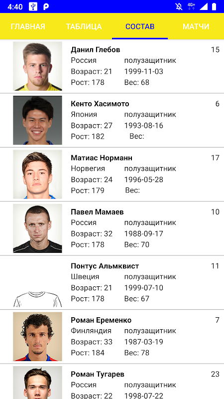 - Будь в курсе полного состава своей любимой команды