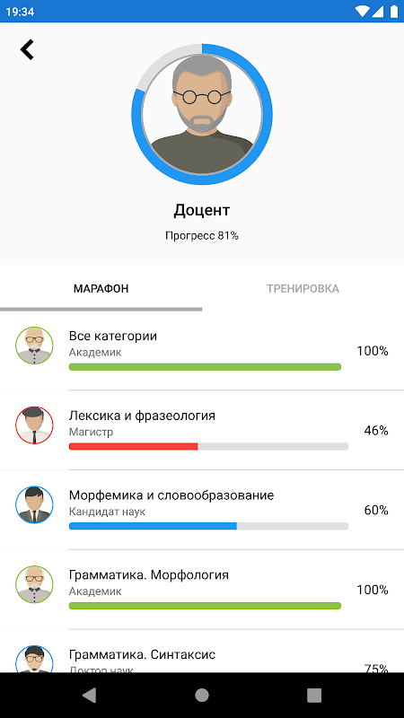 As questões são divididas em níveis de dificuldade. Os níveis básicos cobrem as principais áreas e aspectos do idioma russo, o que permitirá que você se torne um verdadeiro especialista no idioma russo. Um nível aprofundado lhe dará a oportunidade de se sentir como um verdadeiro especialista no campo da língua russa, pois você precisará de um conhecimento profundo do assunto que está sendo estudado.