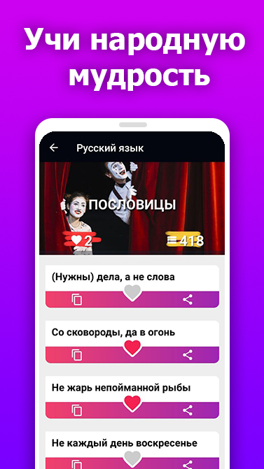 O aplicativo "língua russa" contém os provérbios e ditados mais populares da língua russa.