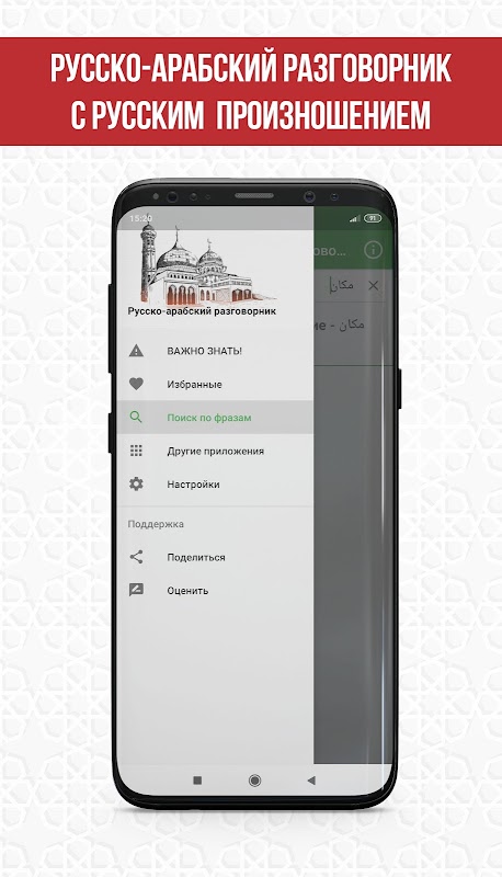 Приложение не только предоставляет доступ к большому и простому в обращении словарю, но и помогает научиться правильно читать арабский текст. В разговорнике вы сможете читать для начало из транскрипции и в дальнейшем сможете читать уже арабский текст. Именно этот подход для начало очень помогает новичкам.