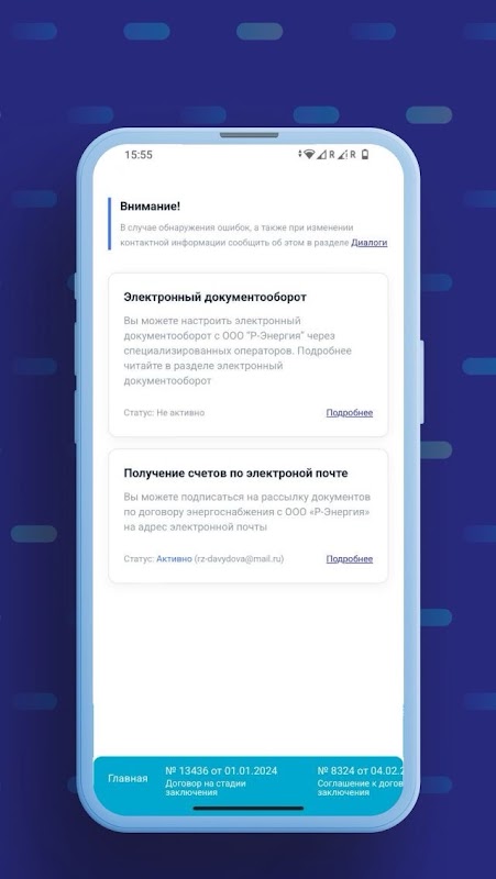 Com a ajuda de uma notificação push, o aplicativo irá lembrá-lo sobre a transferência de leituras, sobre a fatura e a data de vencimento para pagamento.