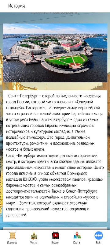 Há uma situação em que você está viajando sozinho ou em casal e deseja fazer uma excursão interessante, mas é caro, pois o guia cobra uma taxa de grupo. Neste aplicativo, você pode encontrar companheiros de viagem para excursões conjuntas e reduzir o custo do passeio. Na seção "Companheiros de viagem" do aplicativo, publique sua postagem e ela ficará visível para outros usuários do aplicativo em um raio de 10 quilômetros. E ao clicar no ícone "geolocalização", você mesmo poderá ver outras ofertas desse tipo em um raio de 10 quilômetros de você! Além disso, no aplicativo, você pode fazer um primeiro contato com São Petersburgo, escolher um lugar para viajar olhando os pontos turísticos e as avaliações de vídeo. O aplicativo também contém informações sobre agências de excursões e hotéis que oferecem seus serviços em São Petersburgo.