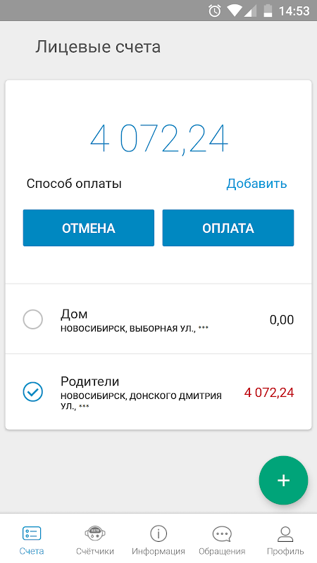 • Производите оплату тепловой энергии и горячей воды в одно нажатие с любой банковской карты;