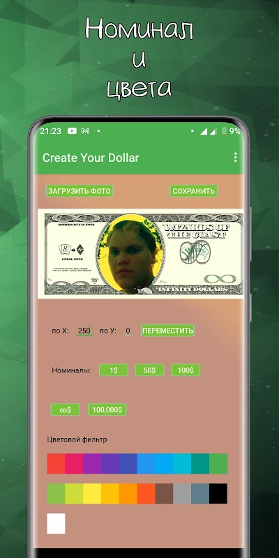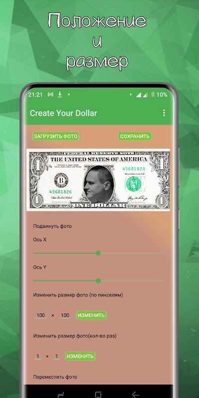 Create Your Dollar даёт возможность создать доллар с любой фотографией. Вы можете: